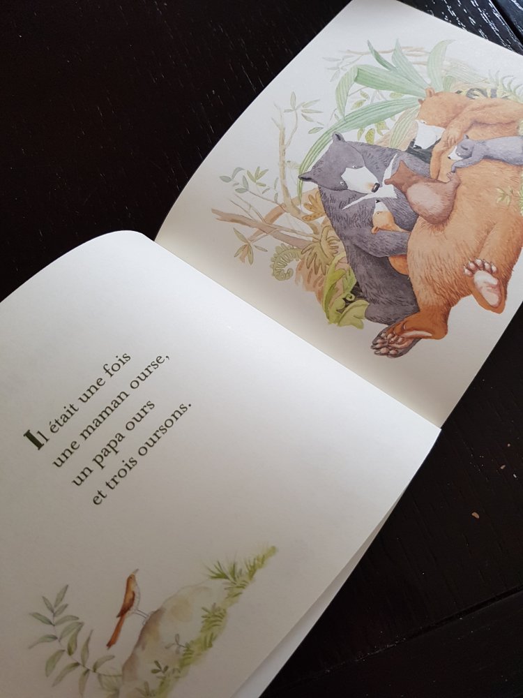 Ce qui m’a bien sûr plu c’est avant tout l’histoire de cette fratrie d’oursons comme la fratrie qu’allait former mes trois p’tits bouts. Les illustrations sont vraiment pleine de douceur grâce aux dessins à l’aquarelle et l’histoire remplie de tendresse.