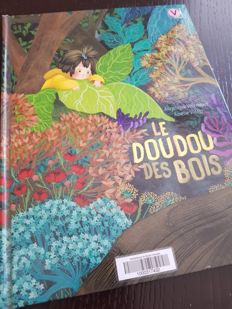 Je vous présente aujourd’hui un album que j’ai un peu pris par hasard à la bibliothèque. J’avoue que la couverture et le prénom de l’héroïne m’ont intrigués. Il s’agit de l’album Le doudou des bois d’Amélie Videlo et Angélique Villeneuve paru aux éditions Sarbacane.