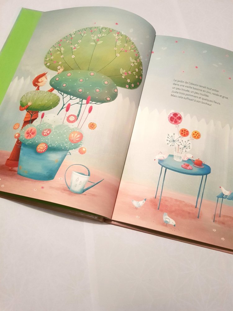 Célestin possède un jardin , mais pas un jardin ordinaire.Un jardin qui attise la convoitise et les curieux… Il s’agit d’un jardin avec trois pommiers et quelques fleurs qui poussent… dans une bassine en zinc, un peu trouée, un peu rouillée. Le jardin de Célestin est un grand voyageur. C’est lui qui décide où il va aller. Ainsi, de temps en temps le jardin parle à Celestin des endroits qu’il a vus. Célestin se met alors à son tour à rêver de ces endroits merveilleux. Mais un matin le jardin est parti… où est il allé ?