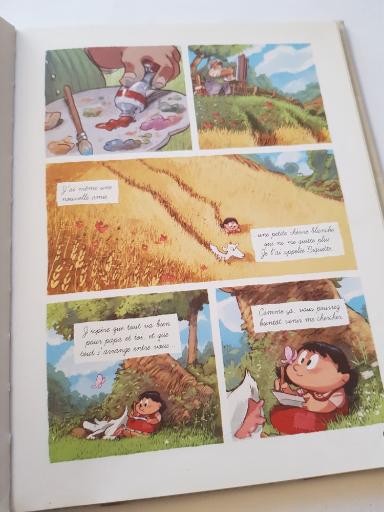 Je trouve que les personnages de cette BD sont extrêmement attachants . Les dessins sont très beaux. Certaines pages sans texte permettent encore mieux d’admirer la beauté des dessins.