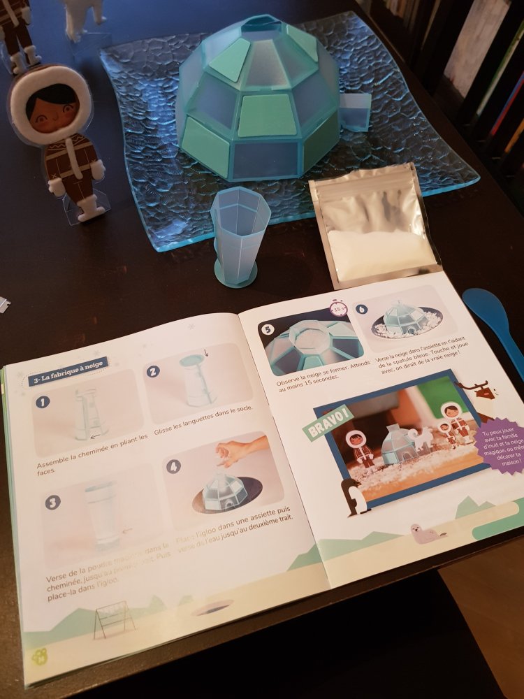 Cette activité a énormément plu à mon fils qui était émerveillé par la fabrication de la fausse neige.