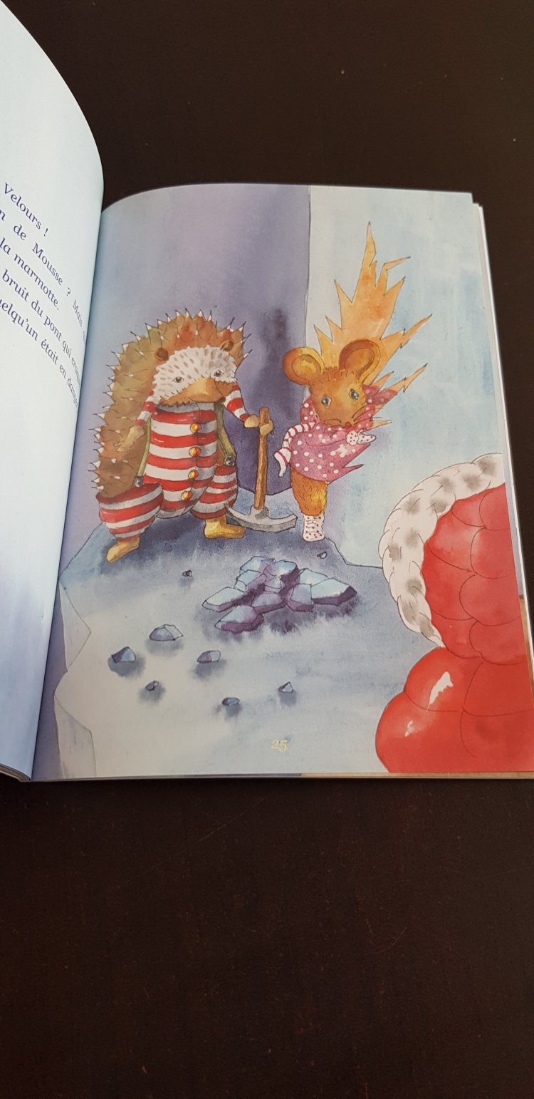 L’album de Plume de velours est sur le thème du courage et de l’amitié. On va suivre les péripéties de la marmotte Plume de velours qui braver plusieurs dangers pour pouvoir envoyer sa lettre au soleil et faire revenir le printemps. Un petit livre tout en douceur que je vous conseille dès 4 ans.