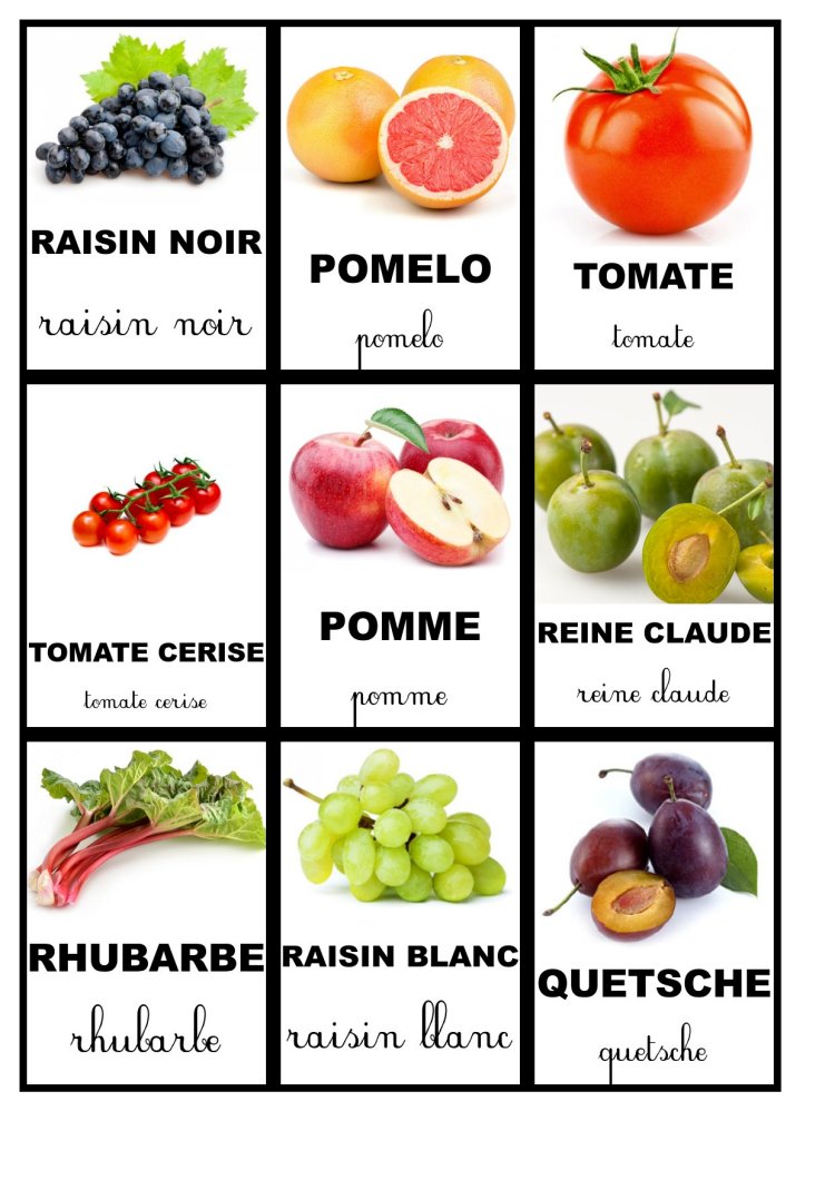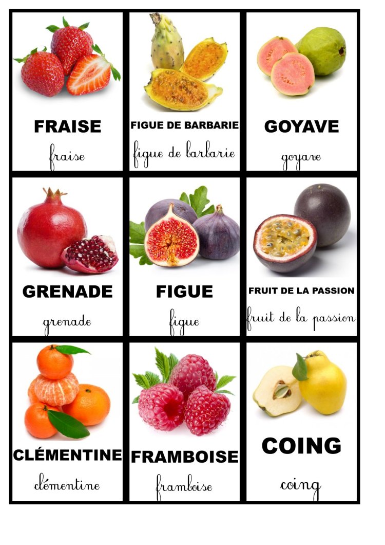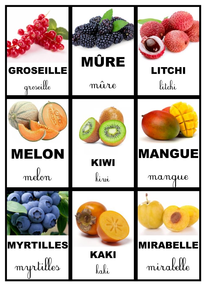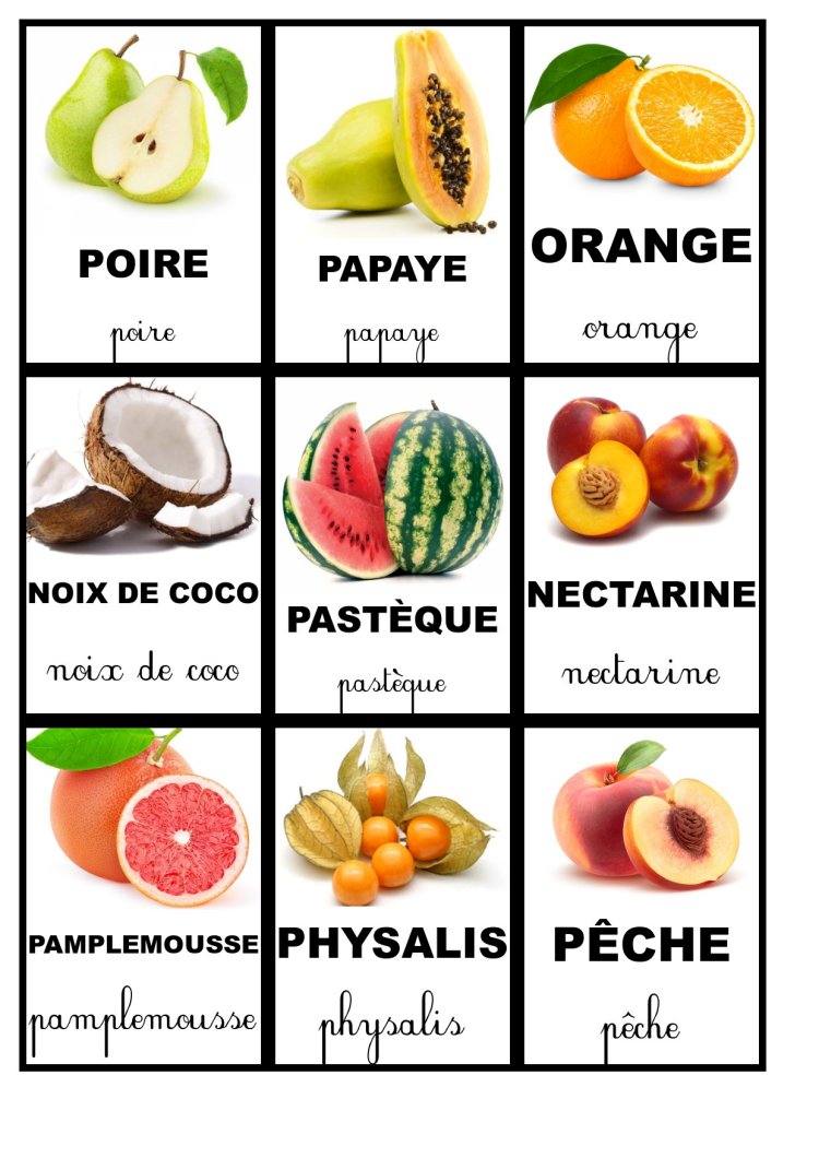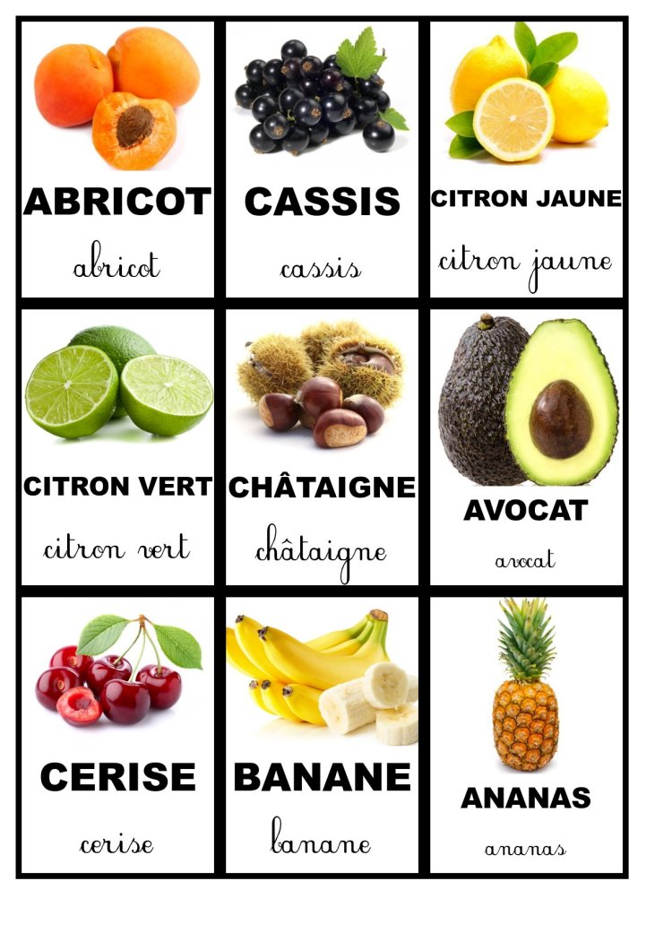 Pour continuer la collection des cartes de nomenclature voici les cartes concernant les fruits. N’hésitez pas à les télécharger.