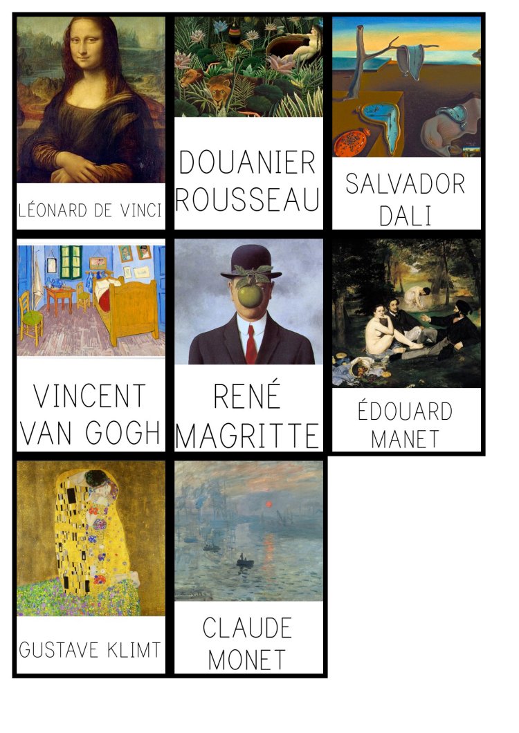 Je reviens aujourd’hui pour vous proposer des cartes de nomenclature sur le thème de l’art et plus précisément sur le thème des peintres célèbres.