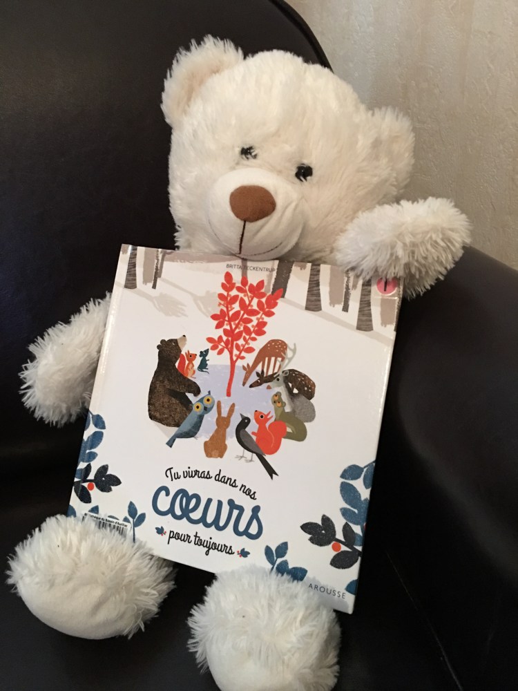 Du coup, lors de ma dernière virée bibliothèque je lui ai trouvé un très joli album qui aborde le thème de la mort et du deuil. Il s’agit de Tu vivras dans nos cœurs pour toujours de Britta Teckentrup paru aux éditions Larousse.