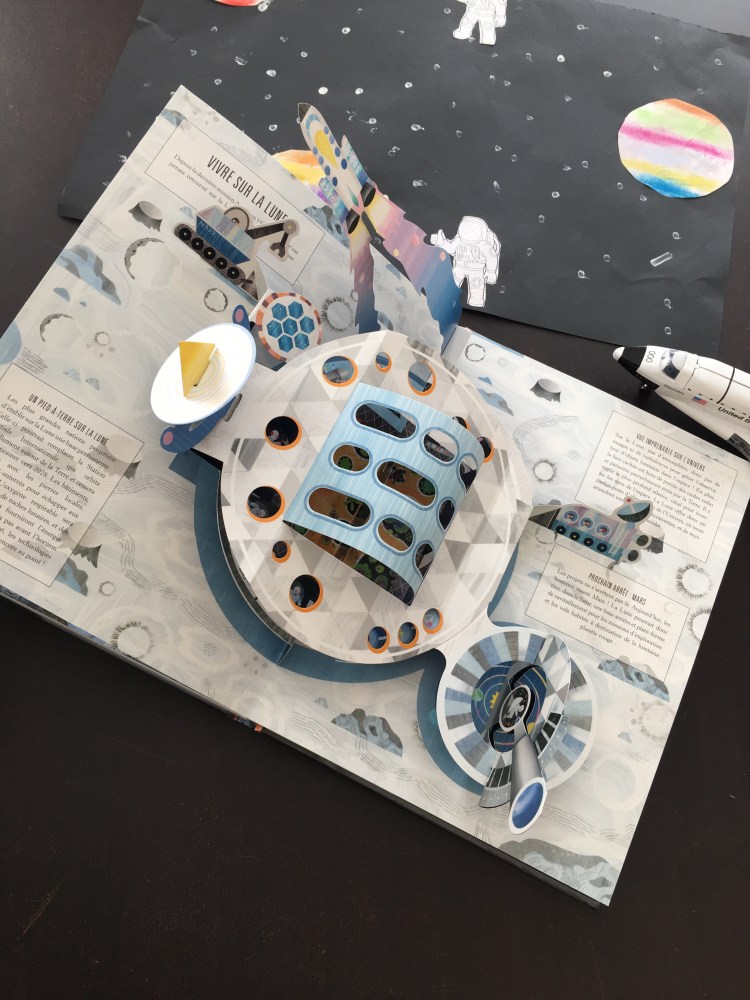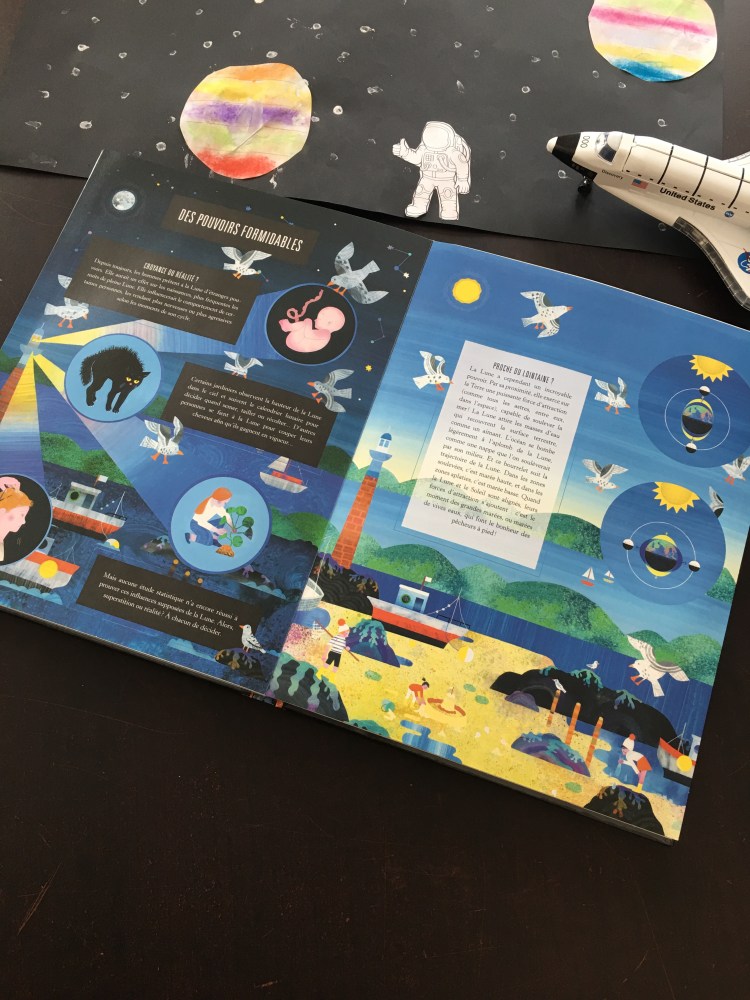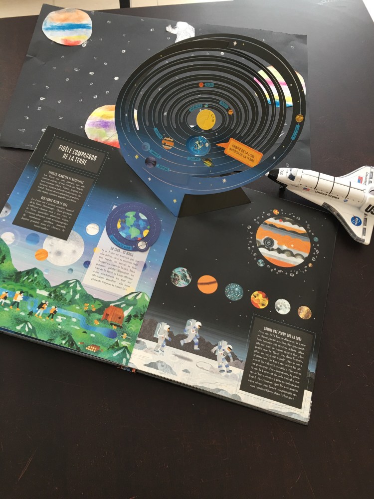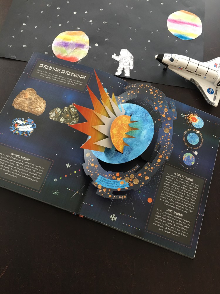 Tout d’abord direction la lune avec le sublime livre Pop up lune paru aux éditions la Martiniere jeunesse . Vous retrouverez dans ce livre 5 magnifiques pops up, vous apprendrez tous les secrets sur les éclipses , sur la mission Apollon … Ce livre est une magnifique découverte.