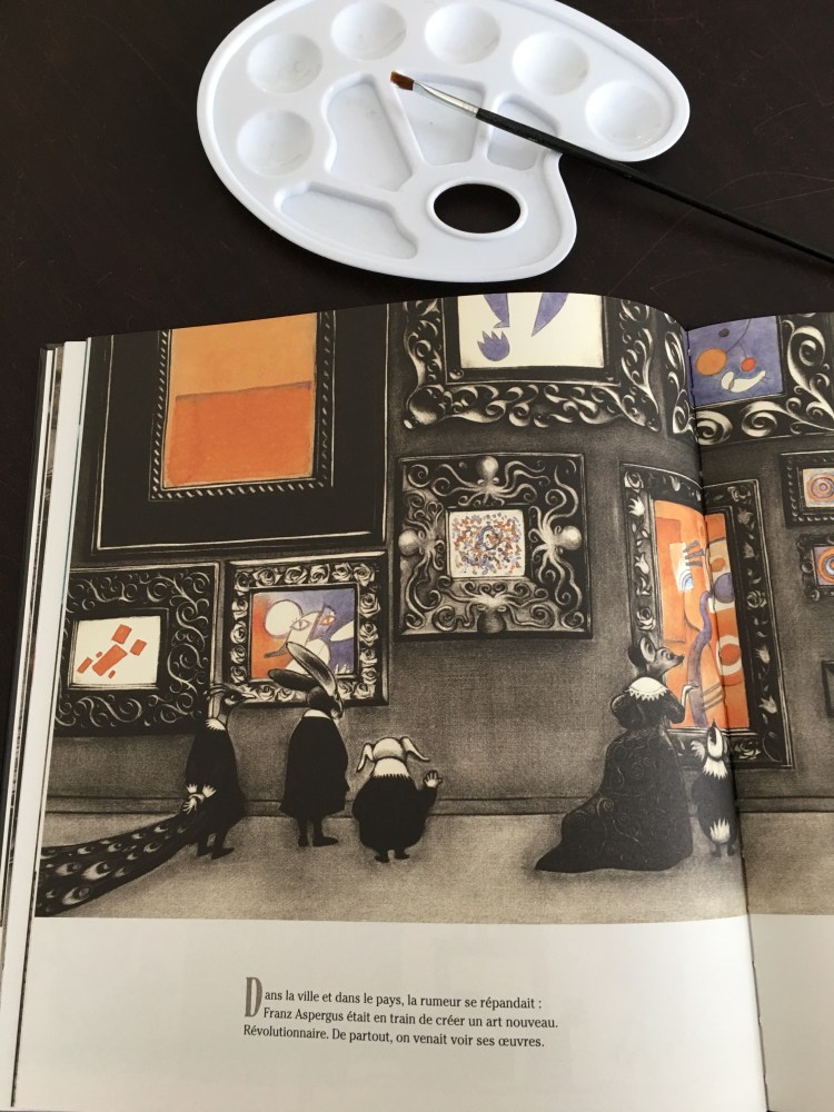 Les illustrations de ce livre sont juste sublimes. Ce noir et blanc donnent une profondeur aux illustrations. Les touches de couleurs vives illustrent parfaitement la naissance de l’Art moderne . On retrouve beaucoup de références graphiques qui font que ce livre n’est pas fait uniquement pour les enfants mais également pour les adultes .