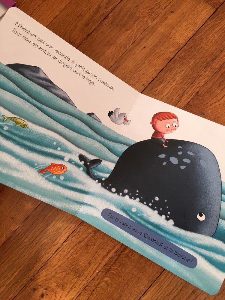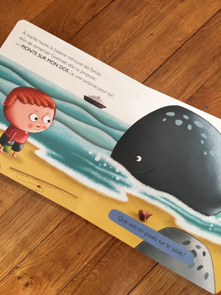 » Gwenaël habite tout près d’une petite plage. Il aperçoit une drôle de forme au bord de l’eau. C’est une baleine avec laquelle il va vivre une belle aventure… »