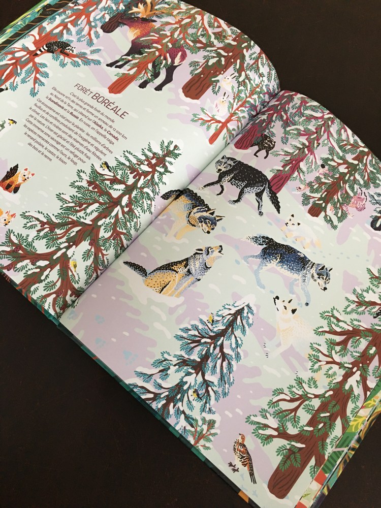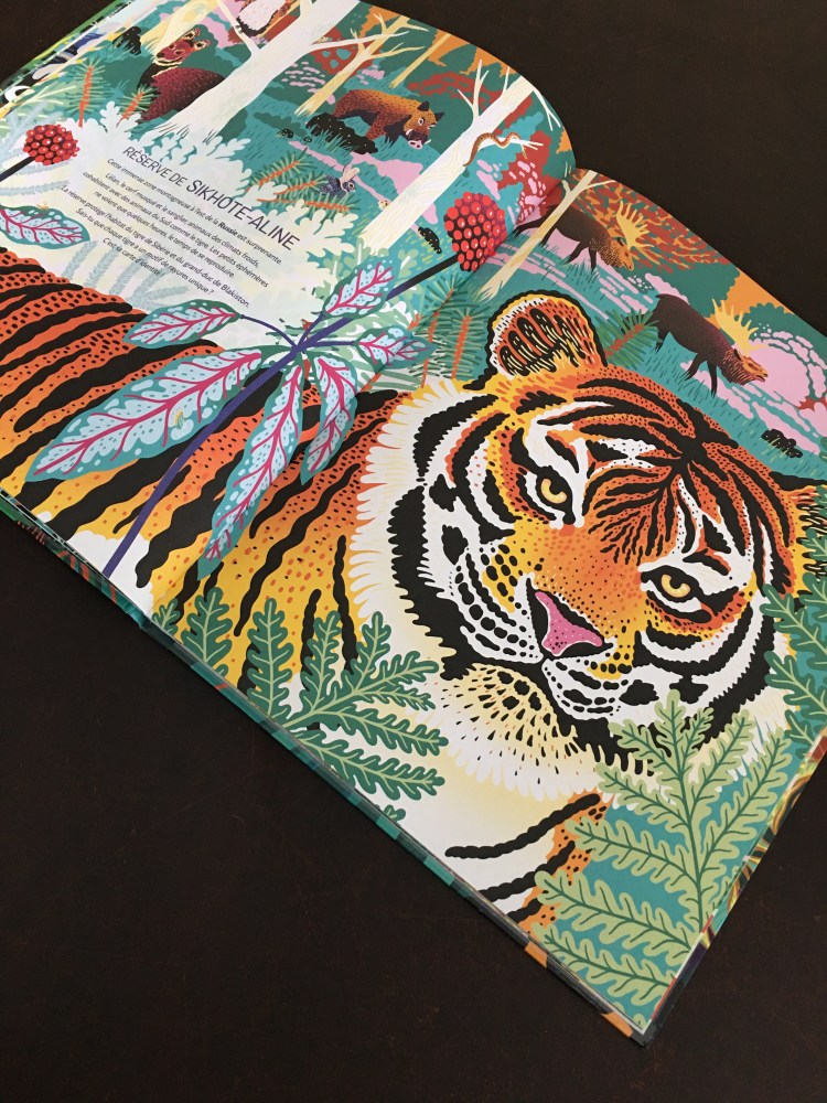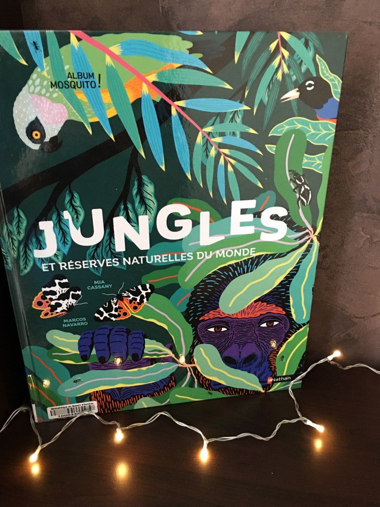 Lors de la dernière virée bibliothèque j’avais eu un énorme coup de cœur pour l’atlas des merveilles du monde et j’avais également eu un deuxième coup de cœur que je vous présente aujourd’hui. Il s’agit de Jungles et réserves naturelles du monde de Mia Cassany et Marcos Navarro publié aux éditions Nathan.