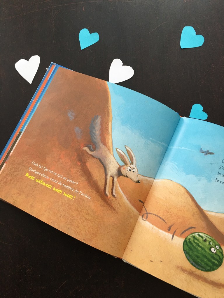 Continuons notre thème de l’amour avec un album très original. Il s’agit du livre Le fennec amoureux d’une pastèque d’Isabelle Desesquelles et Sébastien Chebret publié aux éditions Marmaille et compagnie.