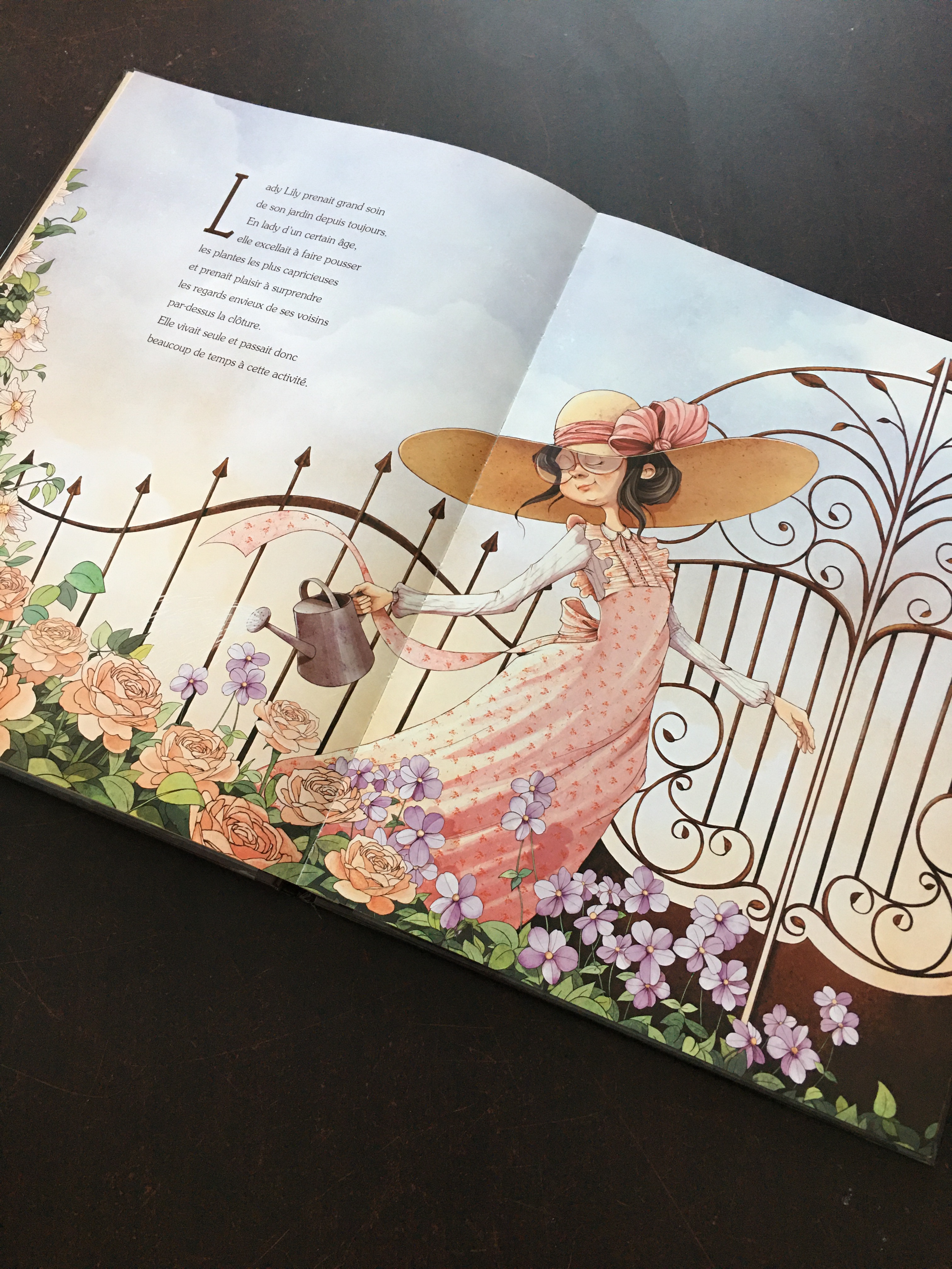 J’ai adoré les illustrations colorées et ce côté art deco. C’est un album à la fois élégant, poétique avec quelques touches d’humour. J’adorerai me perdre dans le jardin de Lady Lily qui paraît si apaisant.