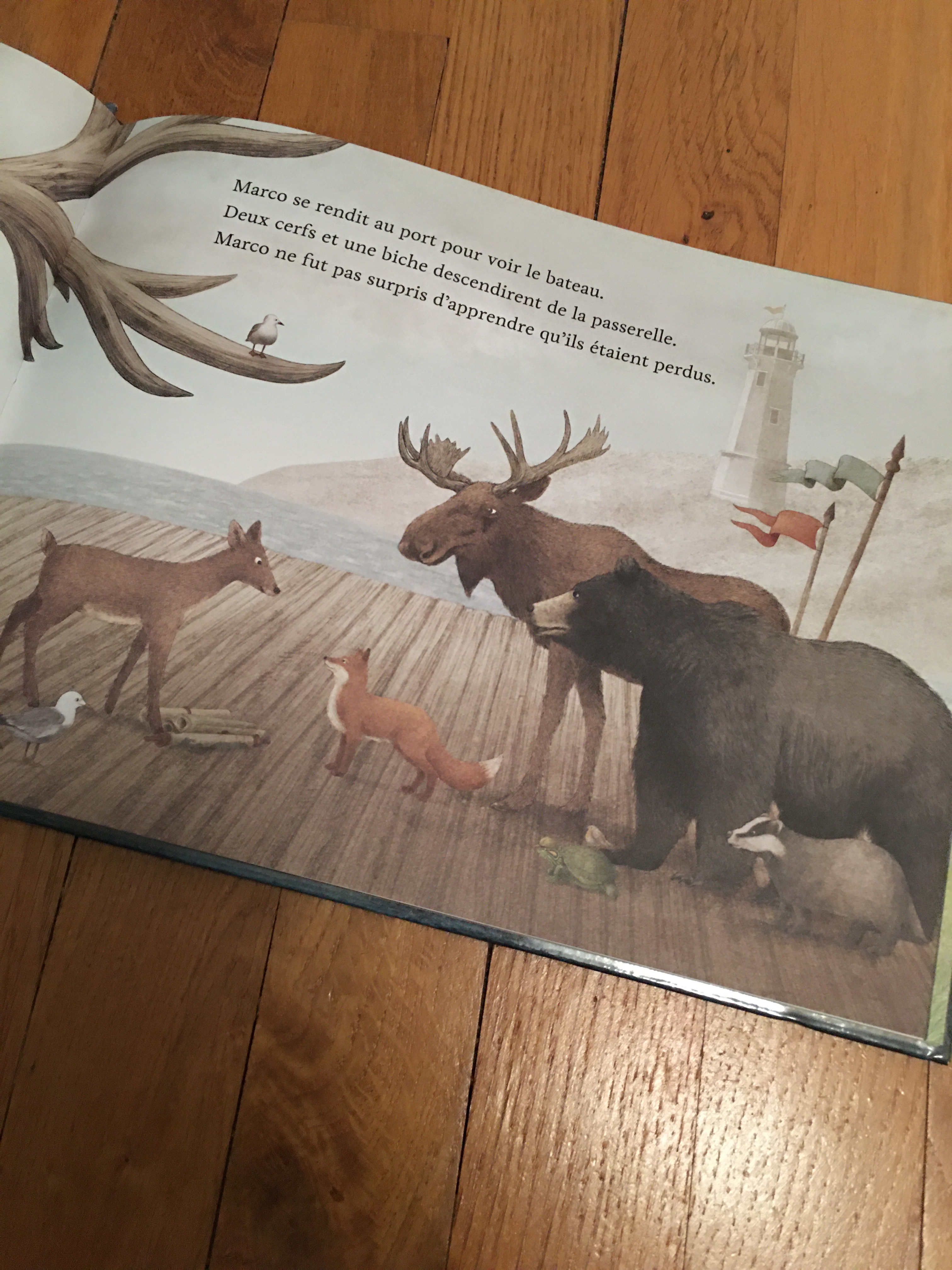 « Marco le Renard se pose des questions sur le vaste monde. Pourquoi est-ce que certaines chansons nous rendent tristes ? Où va le soleil lorsqu’il disparaît derrière l’océan ? Comment naît une amitié ? En quête de réponses, Marco se porte volontaire comme nouveau membre de l’équipage du bateau-cerf prêt à voguer vers de nouveaux horizons… Un enchantement et une belle découverte graphique. »