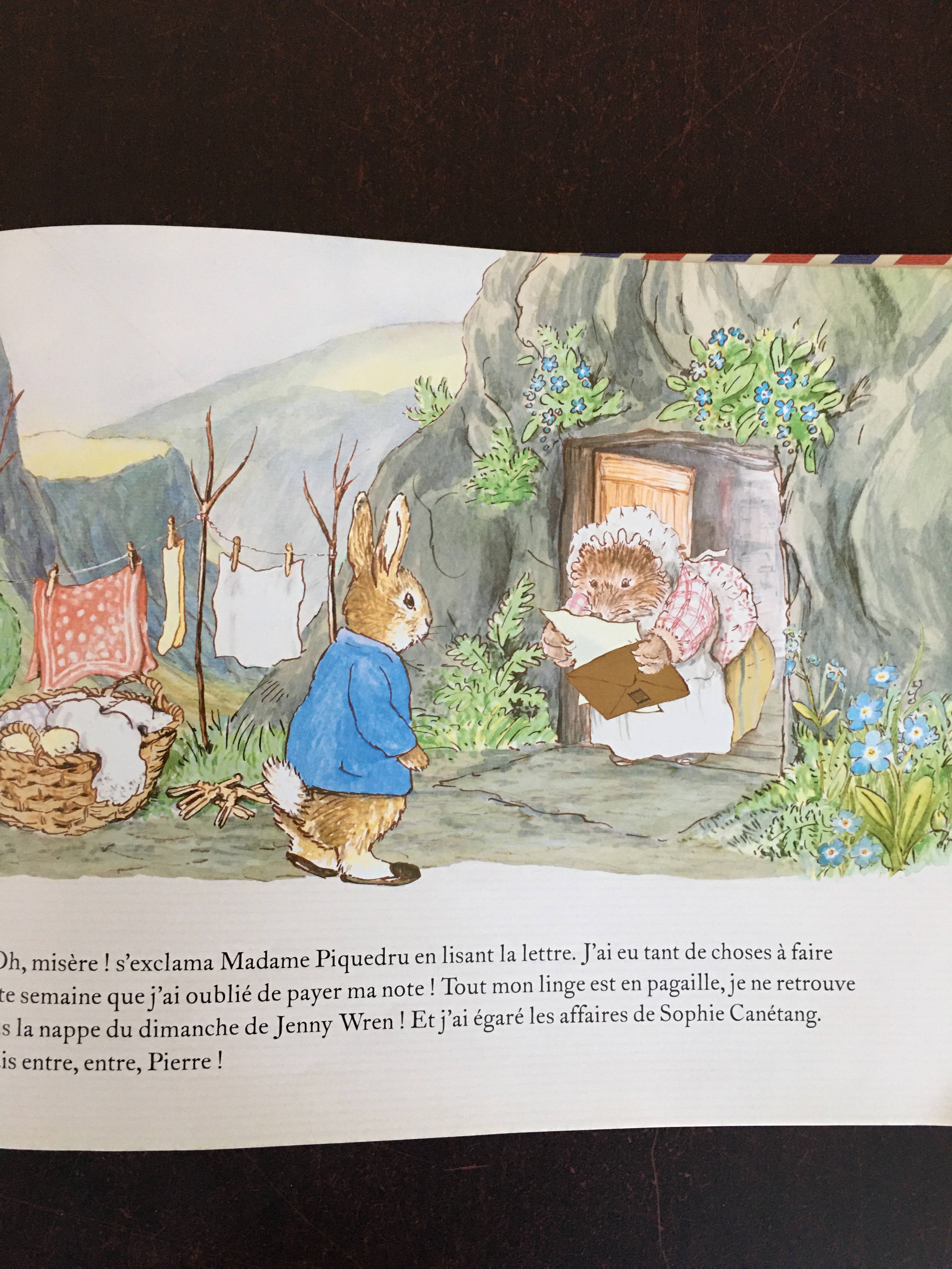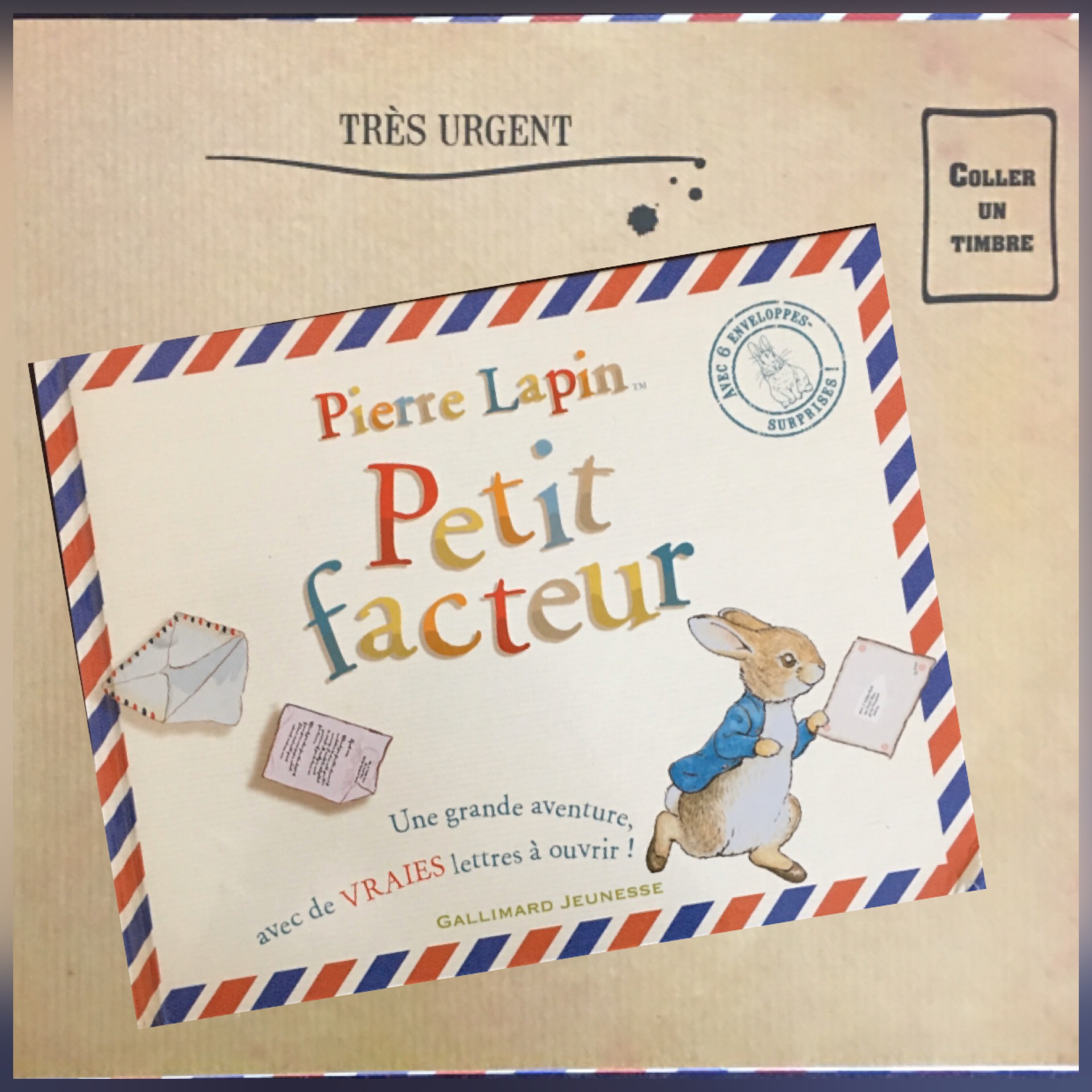 Pas la peine de vous redire tout l’amour que je porte à l’univers de Béatrix Potter . Je cherchais un livre pour mon aîné avec des lettres à ouvrir à l’intérieur sur le même principe que l’album Mon cher dragon qu’il avait adoré . Donc lorsque je suis tombée sur celui ci je l’ai immédiatement acheté . On retrouve notre petit Pierre lapin dans une histoire inédite et bien évidemment les magnifiques illustrations de Béatrix Potter. C’est un livre interactif où chacune des six enveloppes renferment une lettre, une carte postale mais aussi des surprises…
