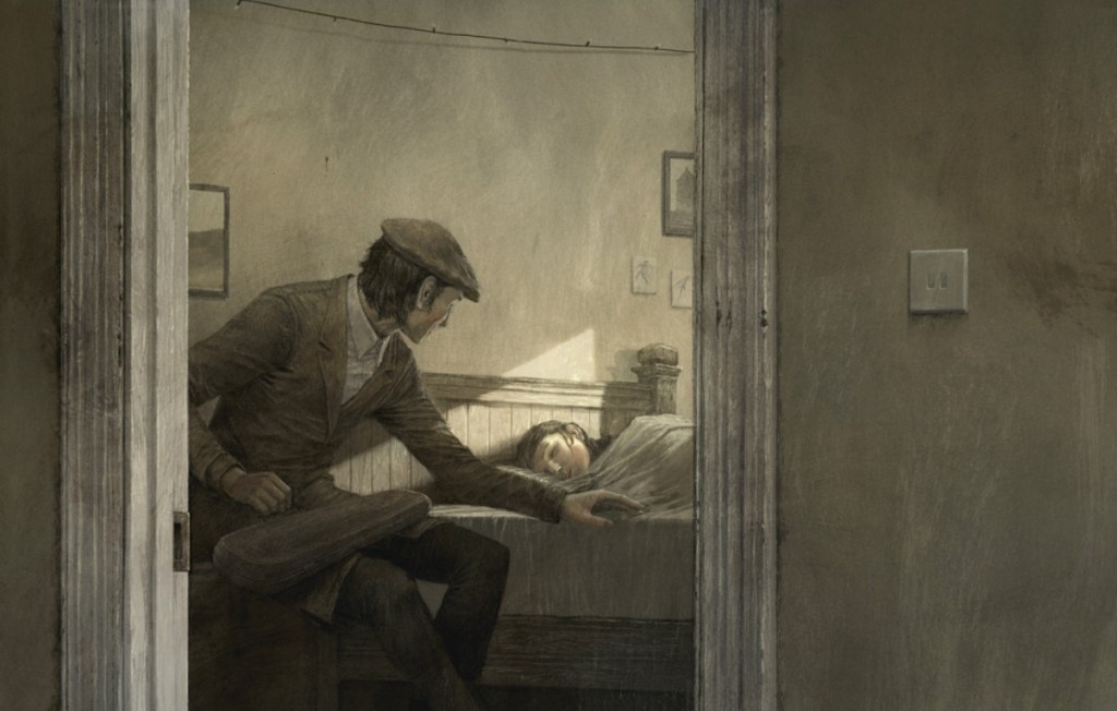 J’avais envie de vous présenter aujourd’hui un album qui m’a totalement conquise par la beauté de ses illustrations et par son histoire . Il s’agit de l’album Le barrage de David Almond et Levi Pintfold paru aux éditions d’Eux.