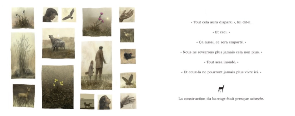 Les illustrations m’ont totalement embarquées dans cette histoire. Elles sont justes sublimes et très poétiques . On dirait de vrais tableaux . Le texte court renforce un sentiment de contemplation de ce splendide paysage.