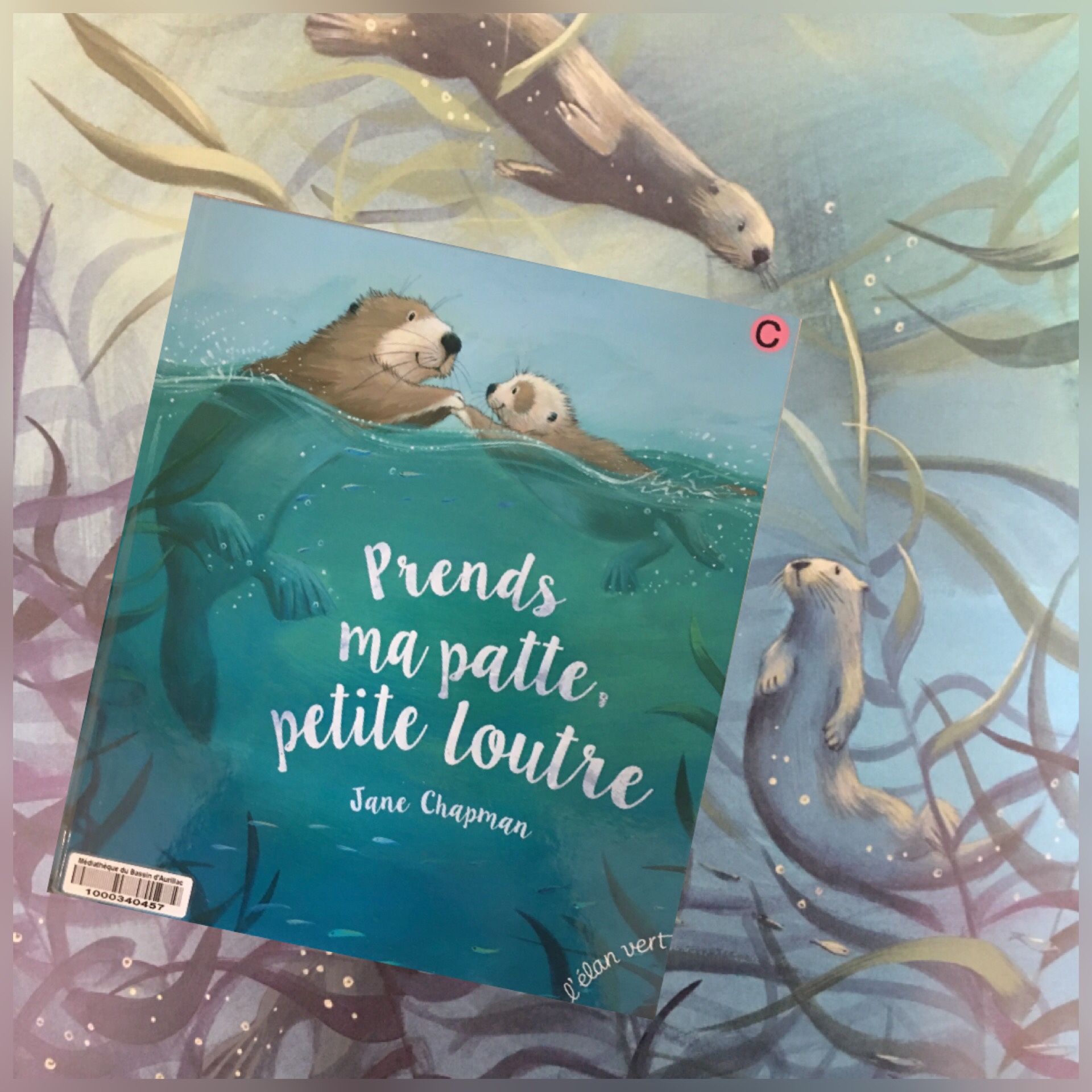 Lors de ma dernière virée bibliothèque j’ai totalement craqué sur la couverture de l’album Prends ma patte petite loutre de Jane Chapman paru aux éditions L’élan vert.