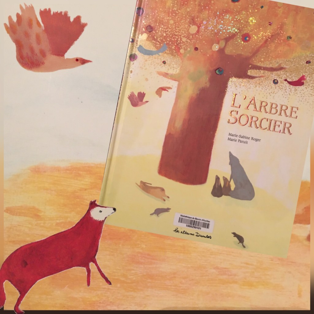 Je choisis les livres bien souvent en fonction des couvertures mais alors celle ci je dois dire à particulièrement attirée mon attention . Il s’agit de l’album L’arbre sorcier de Marie-Sabine Roger et Marie Paruit publié aux éditions Casterman.