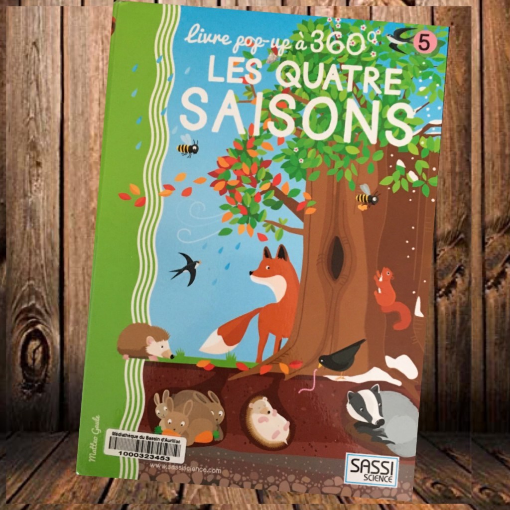 En ce moment avec mes deux plus petits nous lisons pas mal de livres sur le thème des saisons. J’étais donc ravie lors de ma dernière virée bibliothèque de tomber sur le magnifique album Les quatre saisons livre pop à 360 degrés de Matteo Gaule publié aux éditions Sassi science.
