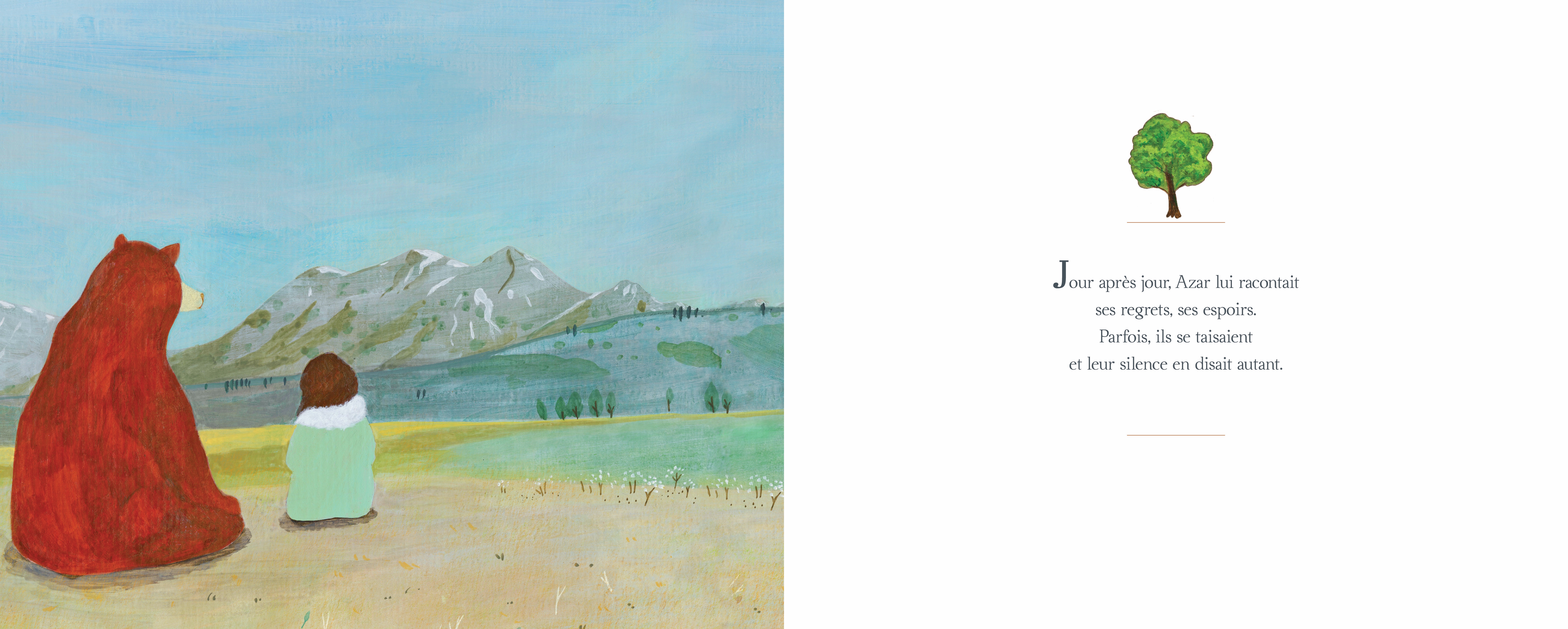 Cet album m’a profondément touché . Déjà les illustrations sont pour moi d’une grande poésie et d’une infinie douceur . Je trouve qu’elles retranscrivent à merveille la tendresse qui émane de la relation entre Azar et Nemo.