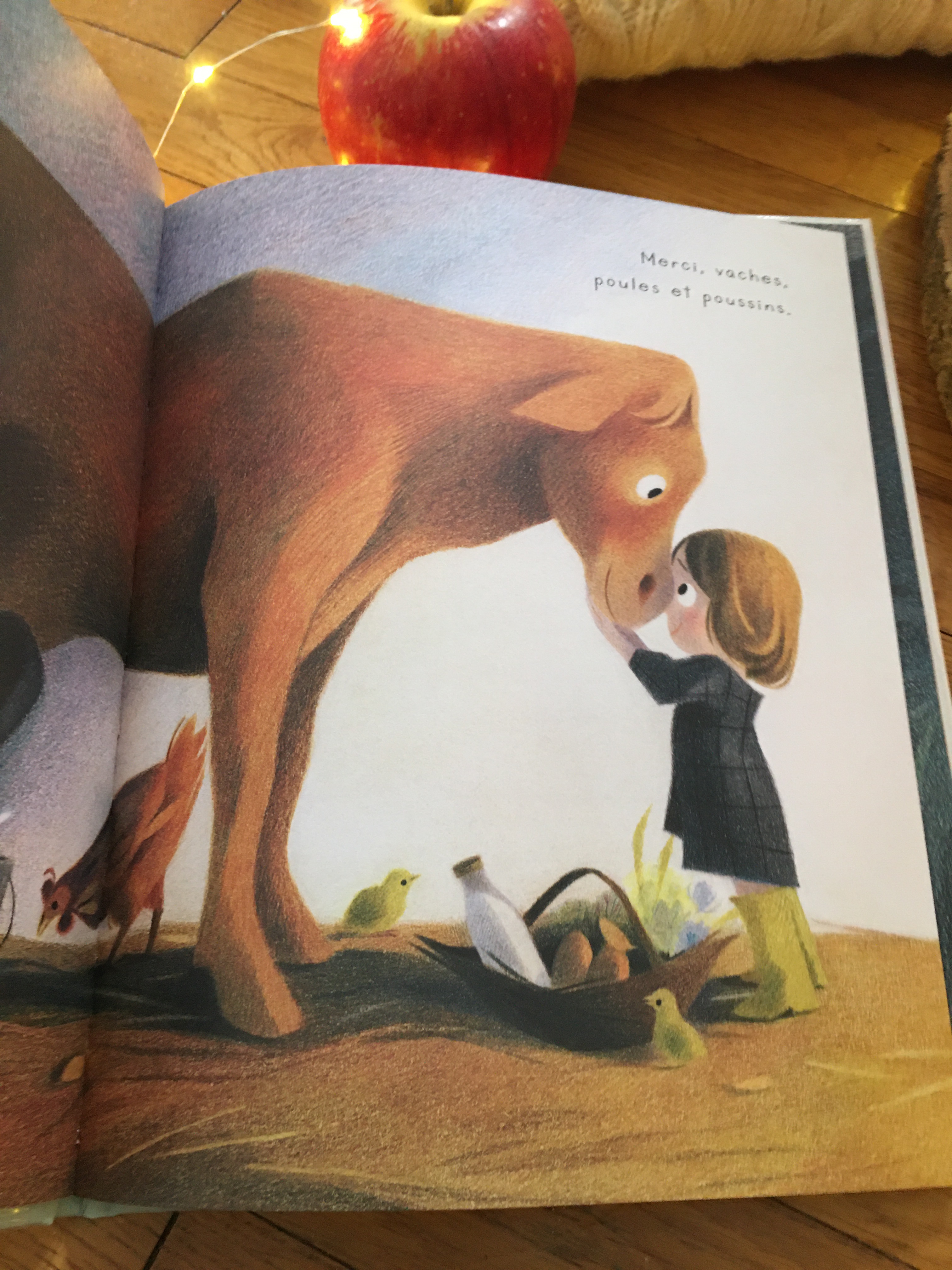 Cet album est un magni hommage rendu à la terre et à la nature. Au fil des pages on suit cette petite fille qui ramasse dans la nature tout ce dont elle a besoin pour cuisiner son gâteau aux pommes .
