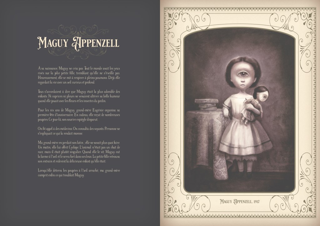 Pensé comme un vieil album de famille nous allons partir à la découverte dans cet album d’une bien étrange famille. La famille Appenzell est une riche famille anglaise. Cependant à la naissance de leur fils Charles quelque chose ne va pas : Charles est différent puisqu’il vient au monde avec des cornes. Il devient alors la honte de la famille et décide d’épouser Dorothy qui elle aussi est quelque peu différente des autres. Ils auront alors beaucoup d’enfants avec chacun des particularités.
