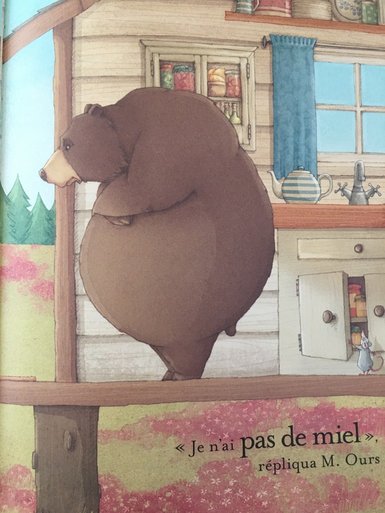 « M. Ours vivait tout seul, au milieu de nulle part, et il adorait ça. Imaginez donc sa colère quand une famille de lapins construisit sa maison juste à côté de la sienne ! »