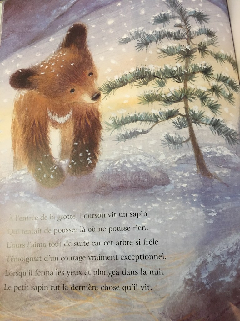«Il neigeait et un ours, ou plutôt un ourson, vit tomber sur son nez deux ou trois très gros flocons. Il comprit que l’hiver venait de s’annoncer et que jusqu’au printemps, il devait sommeiller… »