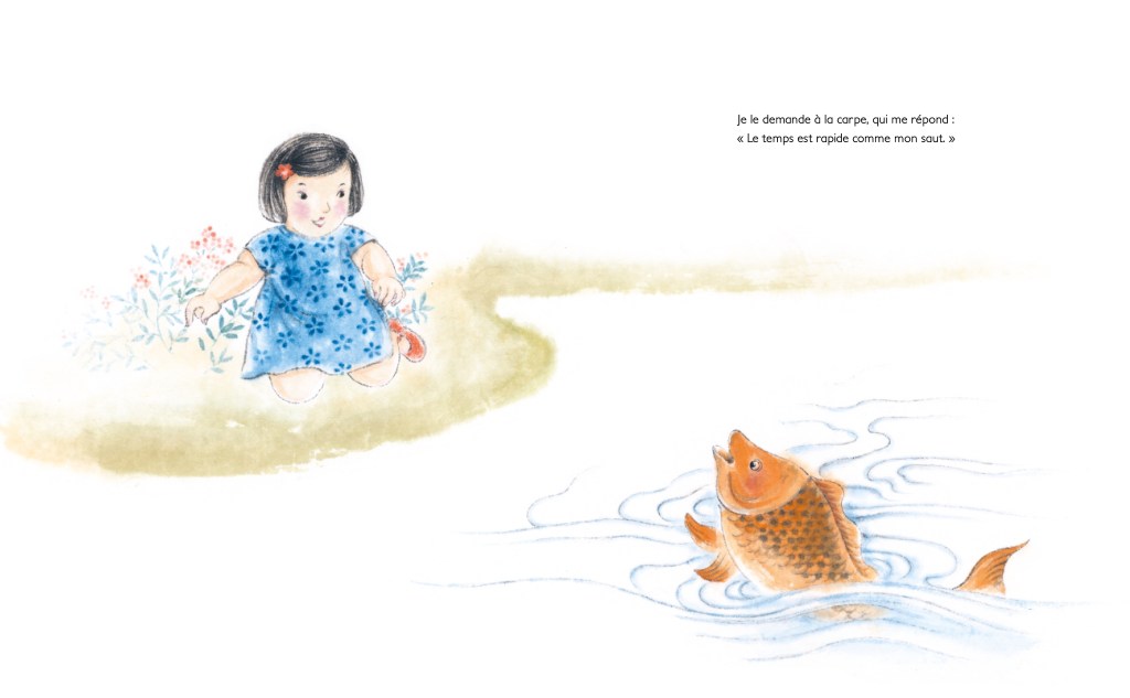 Dans cet album nous allons suivre une petite fille qui s’interroge sur ce qu’est le temps. Pour cela elle va interroger la montagne, la carpe ou bien encore l’arbre. Elle va alors se rendre compte qu’il n’existe pas une seule réponse à sa question.
