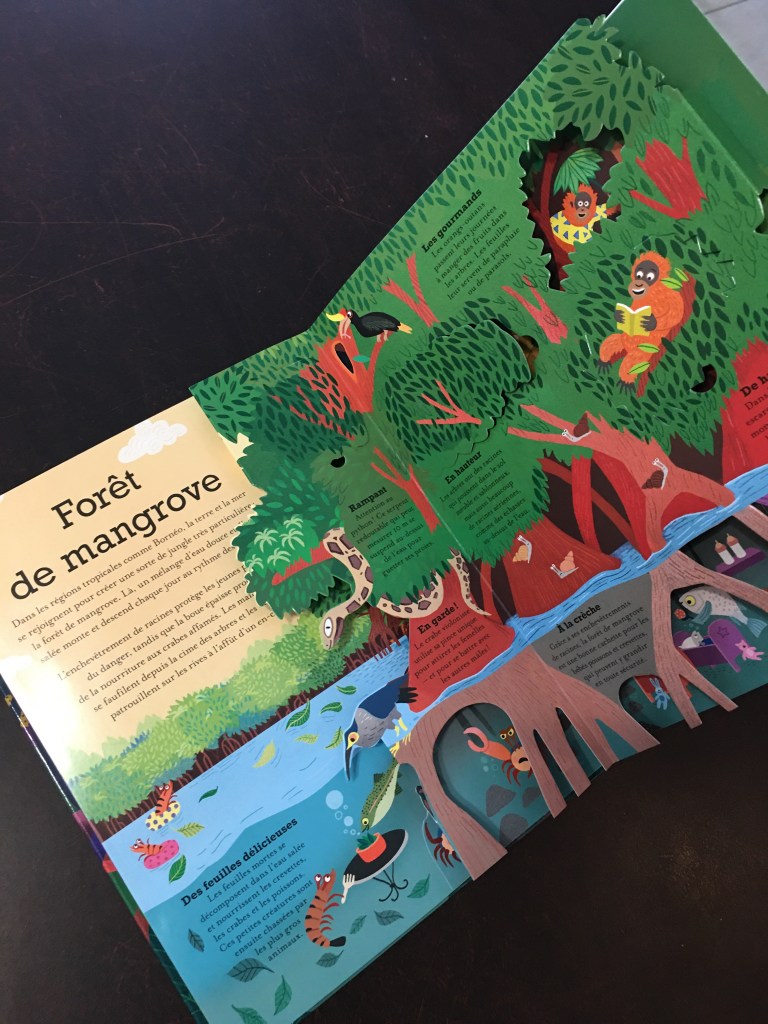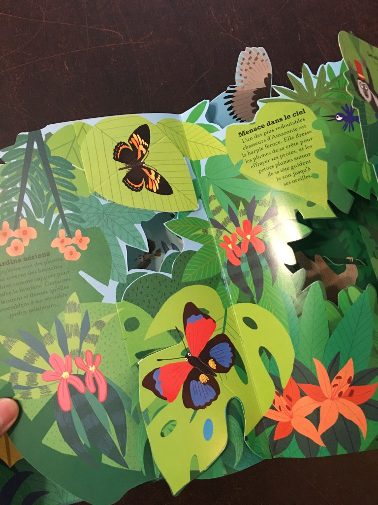 Aujourd’hui j’avais envie de vous présenter un magnifique livre pop up car on adore les livres pop up à la maison. C’est toujours un émerveillement pour les yeux. Il s’agit de La jungle et ses merveilles publié aux éditions Kimane.