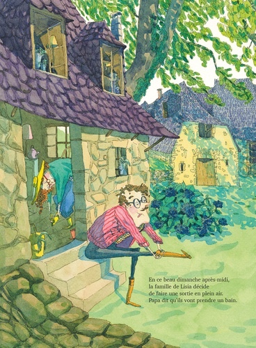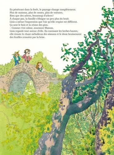 En ce dimanche après-midi, Lisia et sa famille partent prendre un bain. Pas un bain dans une baignoire, non: un bain de forêt ! En pénétrant dans les sous-bois, le paysage change radicalement : rien que des arbres, beaucoup d’arbres, et de toutes les tailles ! Ça sent la terre et la résine de pin. Tous les sens de Lisia sont en éveil. Se frotter aux troncs, les serrer contre soi, marcher pieds nus dans la mousse pour se reconnecter à la nature, observer les arbres et imaginer leur longue vie…