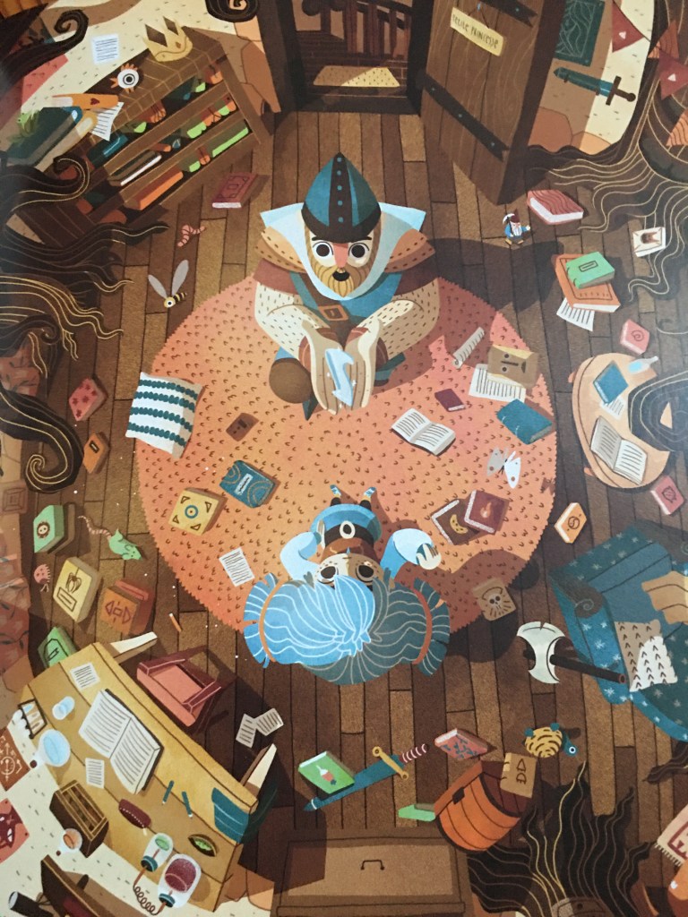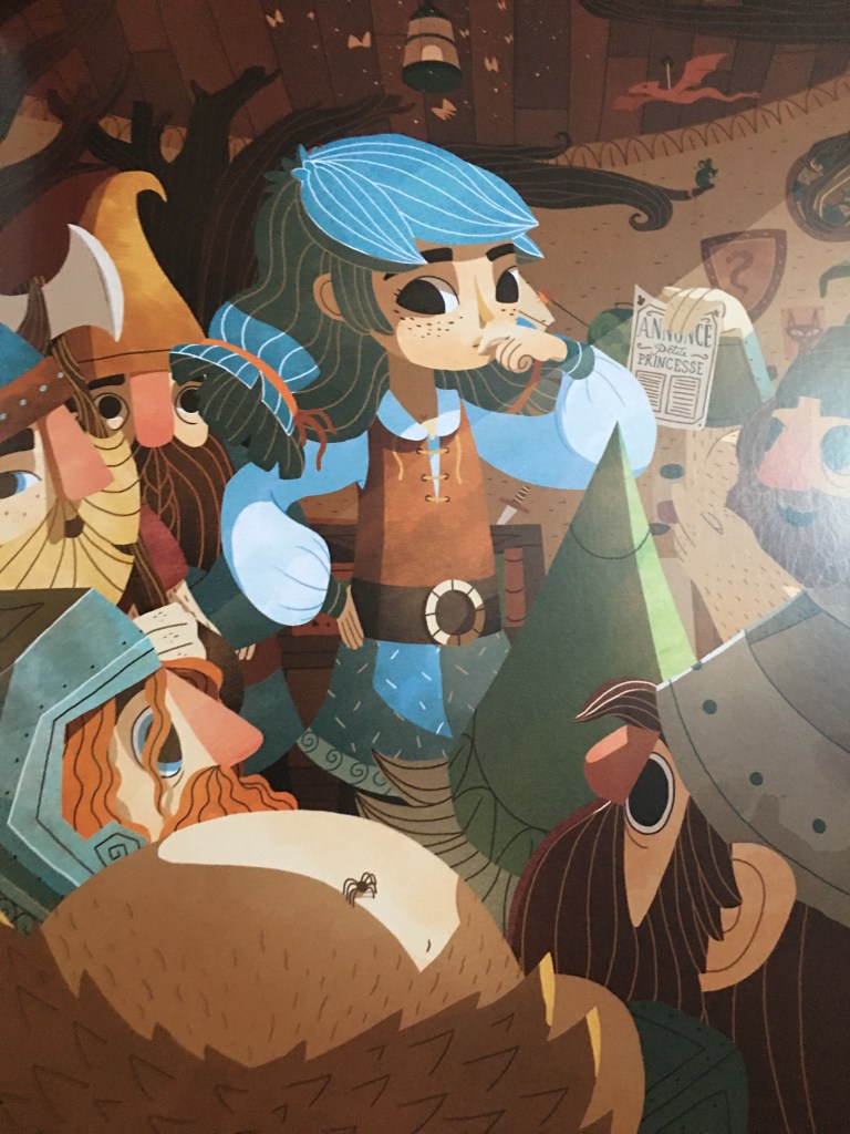 Nous avons tout simplement adoré cette histoire. On y retrouve des clins d’œil aux contes classiques mais cette fois ci ce ne sont pas les chevaliers qui vont venir au secours de la princesse en détresse . Que neni . Nous avons à faire à une héroïne forte et intelligente. Une princesse vraiment contemporaine et cela fait du bien de casser les codes. L’album nous rappelle que la lecture favorise la connaissance et permet à notre princesse de se débrouiller par elle même.