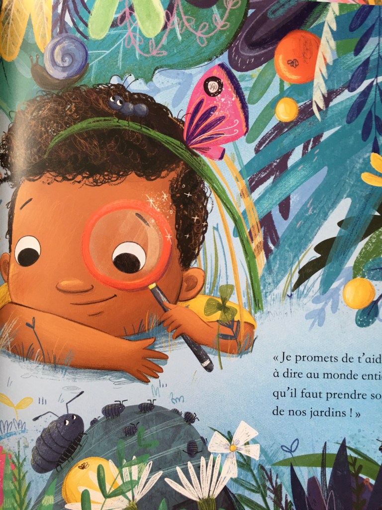 Cet album est une vraie merveille. Déjà mention spéciale pour la plume de Catherine Jacob. Toute l’histoire est écrite avec des rimes . Cela donne un coté à la fois poétique et musical au récit . Grâce à cet album, les enfants vont pouvoir dédramatiser leur peur des petites bêtes qui peuplent nos jardins. Juliette va alors nous montrer l’importance qu’elles peuvent avoir dans la nature et la nécessité de la préserver.