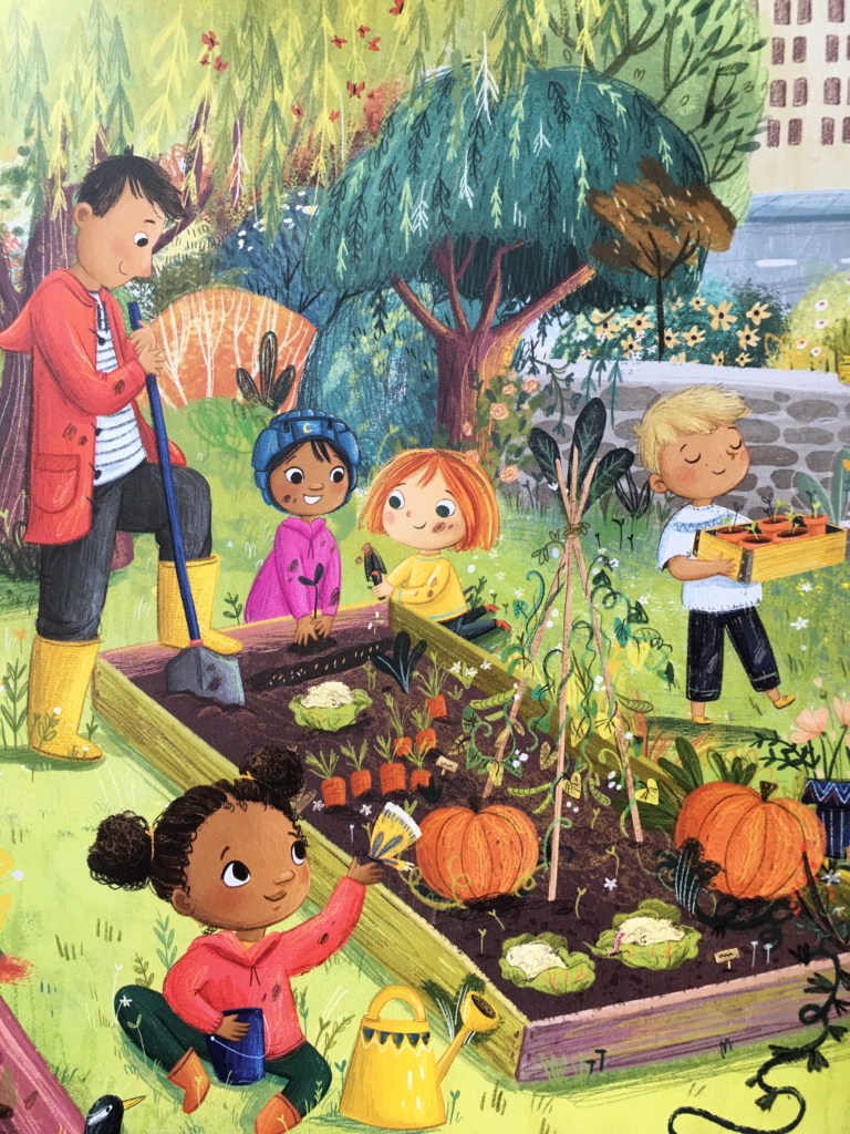 Le graphisme de l’album quant à lui est juste superbe. J’avais découvert Lucy Fleming grâce à l’album La petite collectionneuse de lumières qui avait été un immense coup de coeur. Dans cet album elle nous plonge dans un univers doux et coloré .