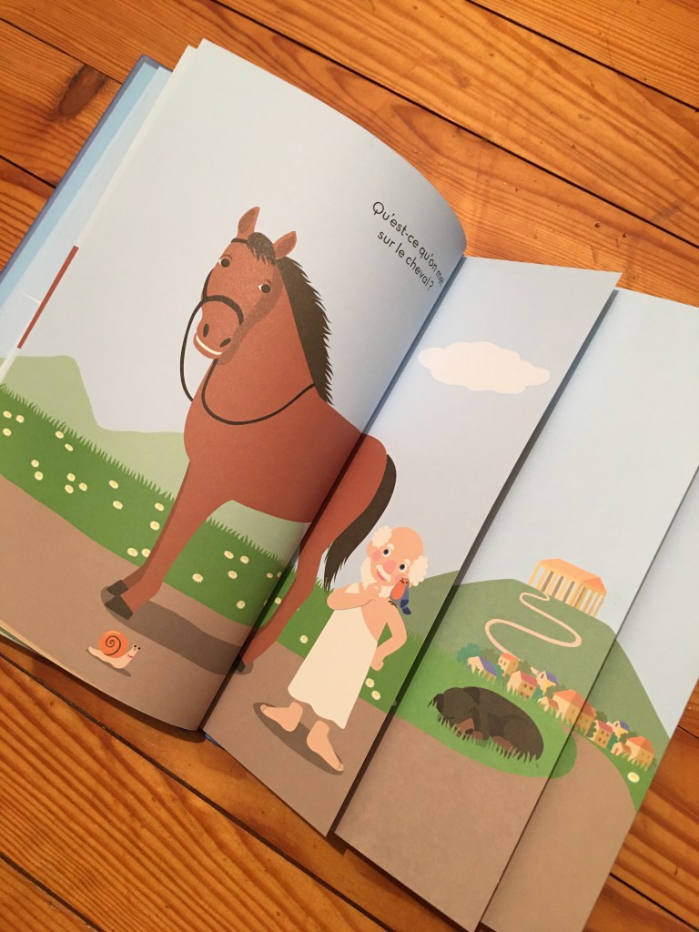 Dans cet album qui s’adresse aux jeunes enfants dès la maternelle, nous allons suivre Platon et nous amène à réfléchir sur le sens et l’arbitraire des mots. Pourquoi un cheval s’appelle-t-il un cheval ? Et pas une girafe ? Ou une carabistouille.