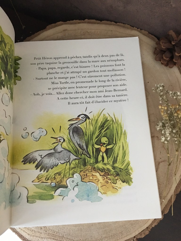 C’est un excellent moyen pour aborder le thème de l’écologie avec les enfants. Le livre se termine sur une double page documentaire où l’on sensibilise l’enfant à la pollution des rivières et l’impact des produits ménagers.