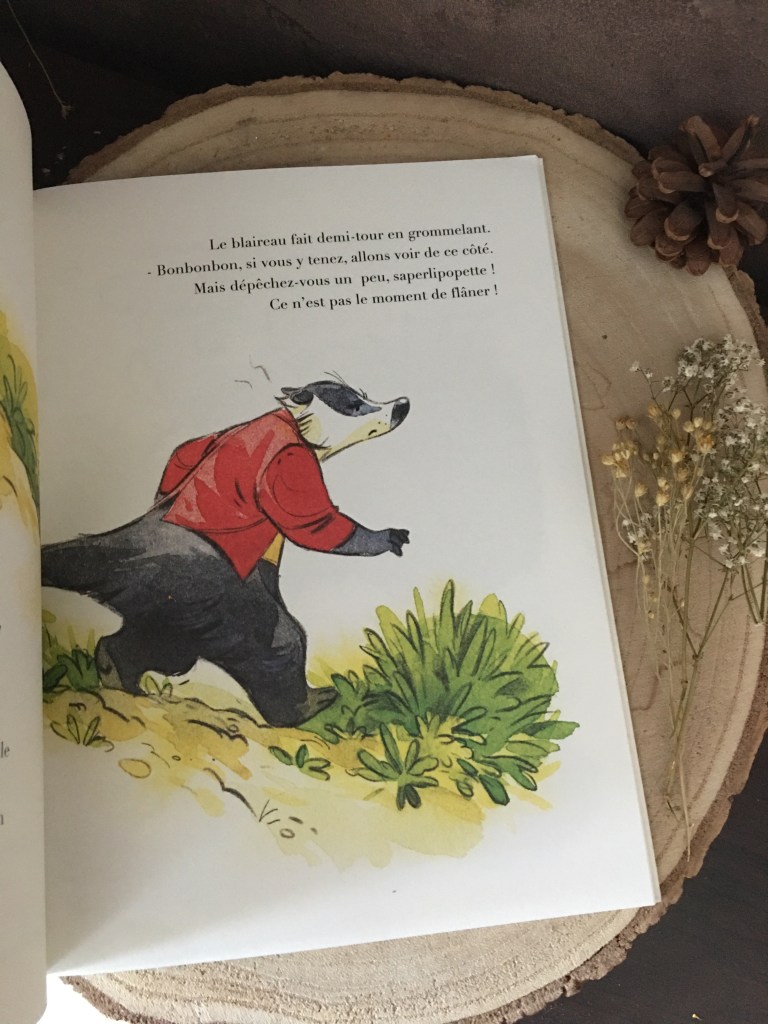 J’ai adoré cet album qui fait partie de toute une série de titres. Ici nous avons à faire à un duo d’enquêteurs de choc : un blaireau grognon mais fin limier et une tortue très observatrice. C’est tout simplement savoureux tant par le texte qui ne manque pas d’humour et par les illustrations qui ont un côté vintage que personnellement j’adore.