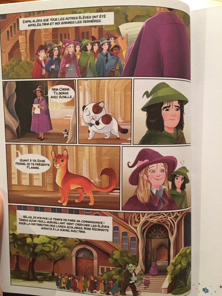 Ce roman jeunesse est une magnifique découverte. Tout d’abord il faut parler de la particularité de cet ouvrage : il s’agit à la fois d’un roman et d’un bd. En effet tout au long du récit le texte est entrecoupé avec des planches de bd. Je trouve ce concept vraiment très original et rend la lecture très dynamique. Je pense que cela permet à l’enfant qui est jeune lecteur d’encore mieux se représenter l’ambiance et l’atmosphère du livre. Les illustrations sont vraiment adorables . Elles nous plongent immédiatement dans cette ambiance à la fois magique et mystérieuse.