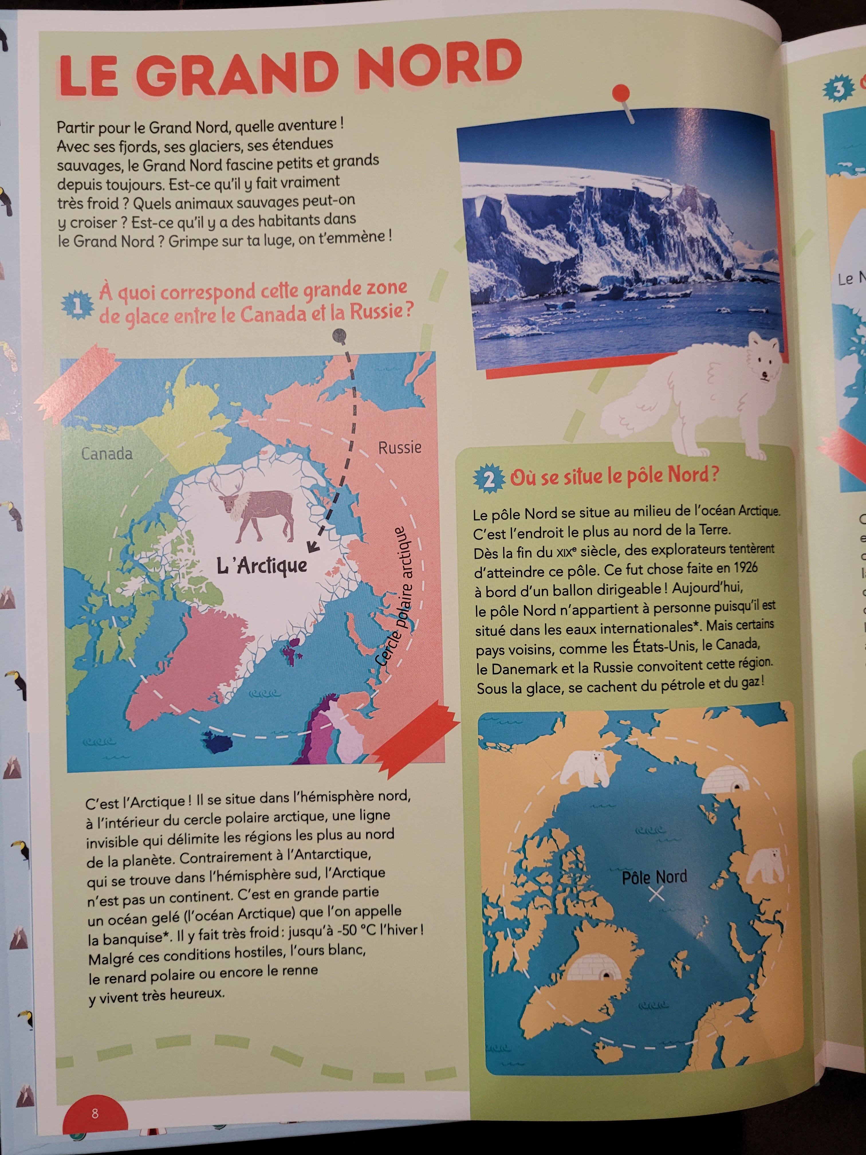 On découvre plein de thématiques aussi bien sur la géographie, que les langues parlées, les ressources des pays, les animaux…