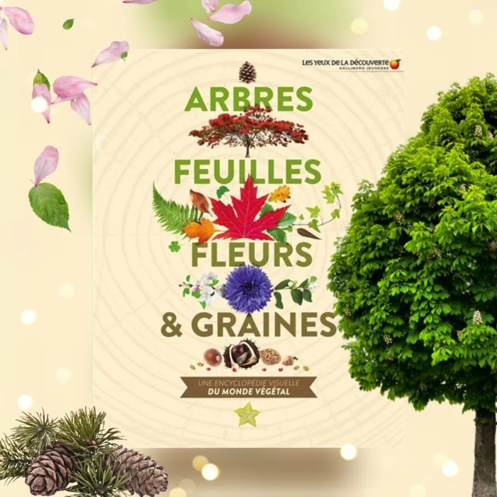 Je reviens aujourd’hui pour vous présenter un documentaire coup de cœur. Il s’agit de Arbres feuilles fleurs et graines publié aux éditions Gallimard jeunesse dans la collection Les yeux de la découverte.