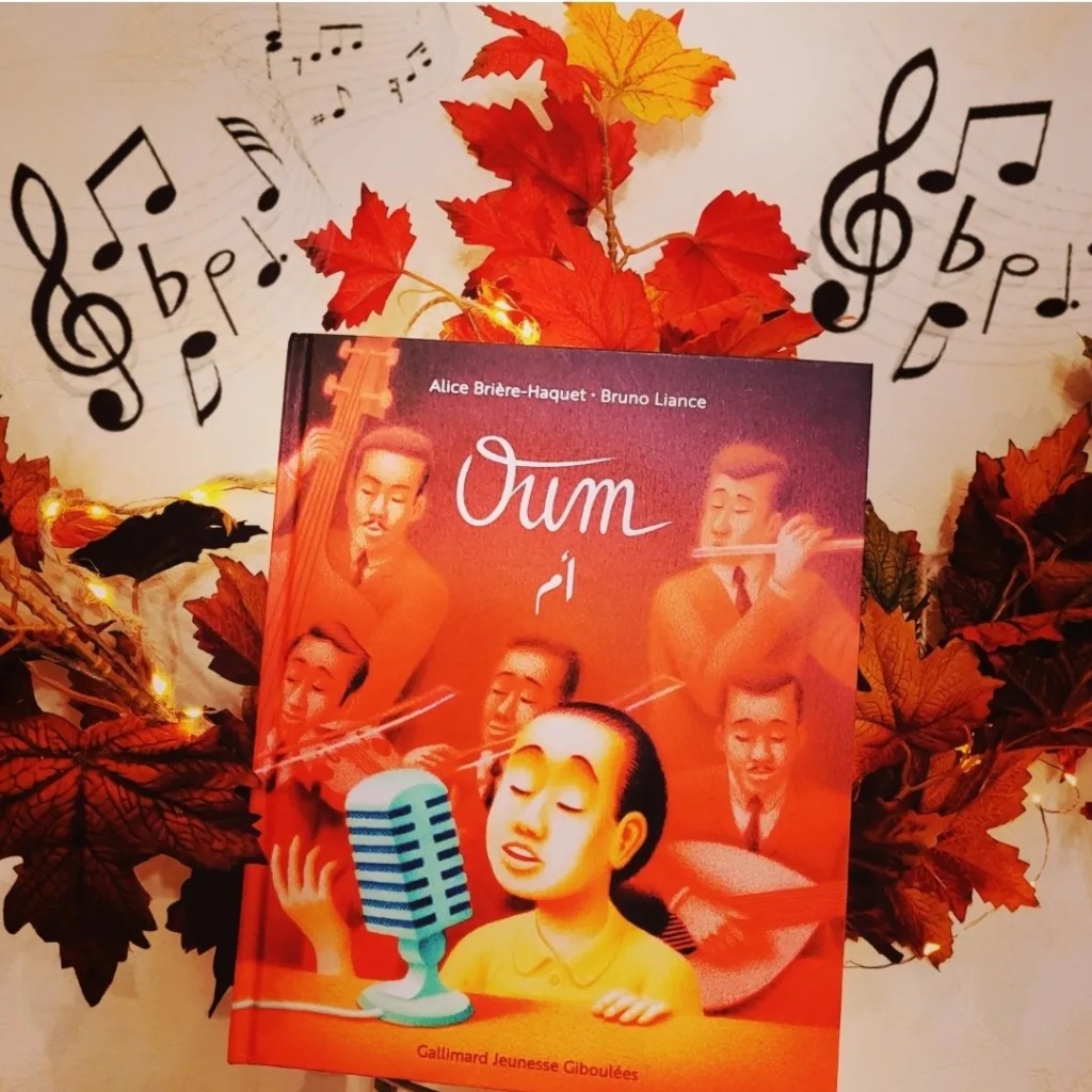 Dans cet album nous découvrons le parcours extraordinaire d’Oum Kalthoum qui a fait preuve de ténacité pour devenir la très grande chanteuse qu’elle souhaitait devenir. La plume est poétique et les illustrations sont remplies d’une grande douceur et d’une grande luminosité . Les couleurs chaudes qui inondent ces illustrations nous plongent totalement en Orient.