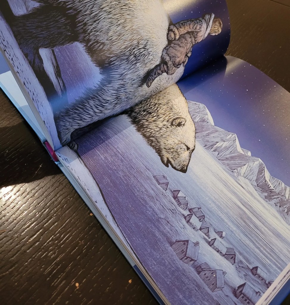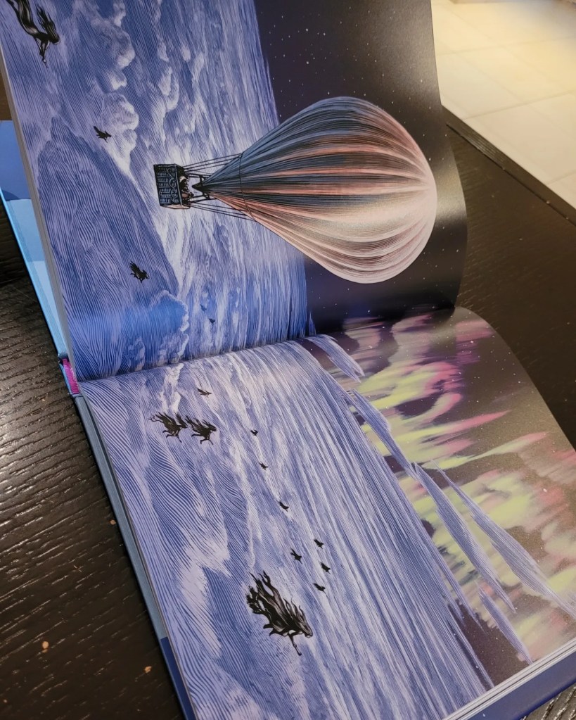 Plein de souvenirs de lecture me sont revenus en découvrant cette version illustrée.Une vraie madeleine de Proust . Philip Pullman fait parti des mes auteurs jeunesse incontournables et cette trilogie est pour moi juste culte . Je ne vous raconte même pas ma joie lorsque j’ai vu que Gallimard jeunesse en sortait une version illustrée. Elle est tout simplement sublime .