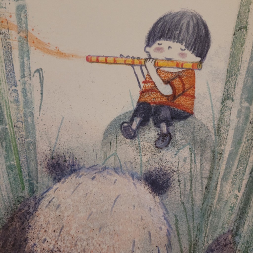 « Chi est un petit panda timide qui se cache dans la forêt. Un jour, une douce musique parvient en haut de son arbre. C’est un petit garçon qui souffle dans une flûte en bambou ! Chi est trop craintif pour s’approcher. Mais lorsque la brume s’élève dans la forêt, Chi doit trouver en lui le courage d’aider le jeune garçon égaré, même si cela signifie être vu… «