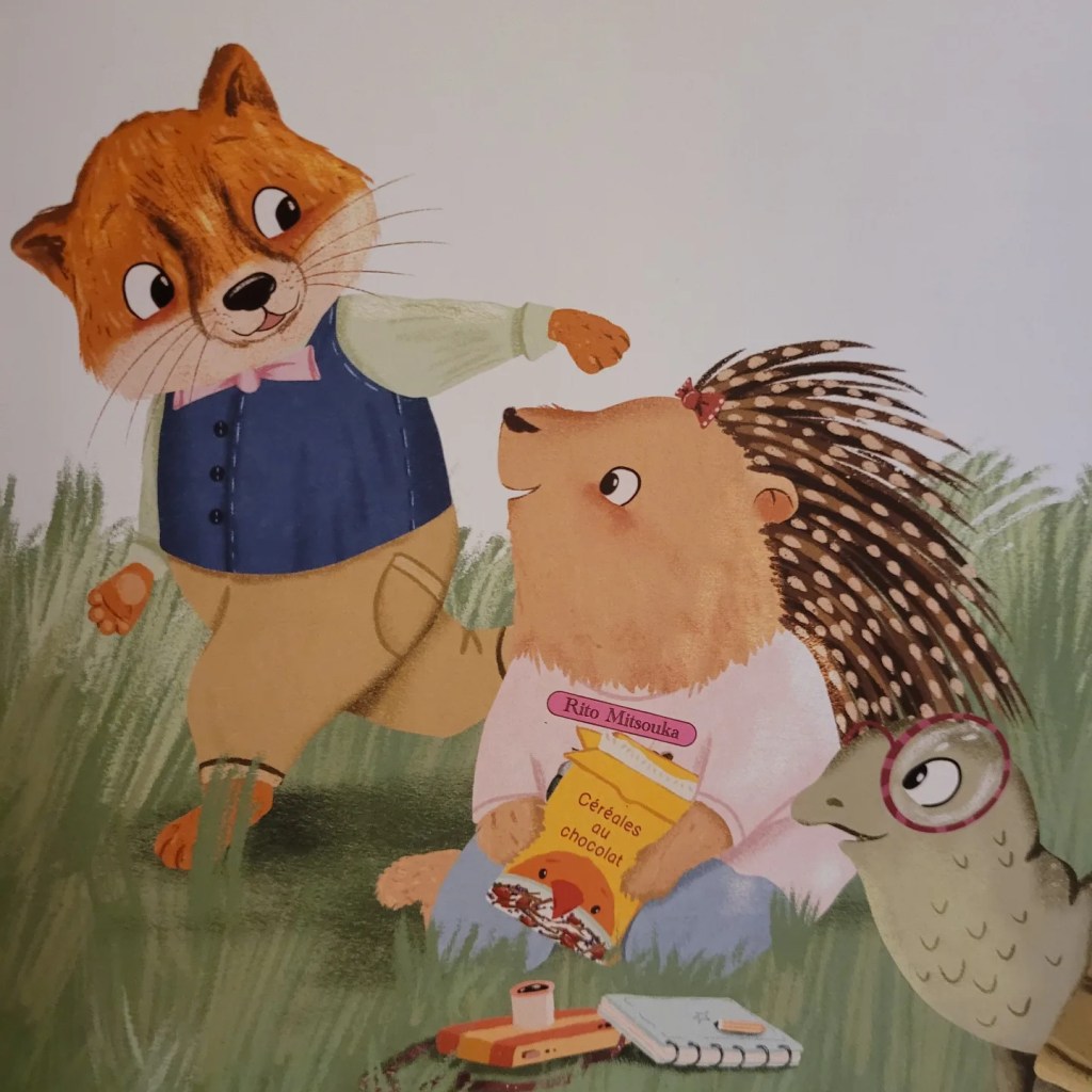 Bon en voyant cet album j’ai clairement craqué pour les illustrations que je trouve trop trop mignonnes . Je suis très friande des albums mettant en scène des petits animaux adorables et là c’est totalement le cas. Hormis ces superbes illustrations, l’album aborde le thème de l’amour , de l’amitié et de la différence. Pakita est différente des autres élèves de la classe et se sent seule. A la manière d’une enquête policière Pakita va devoir trouver quel est son ami secret. Le texte est vraiment bien écrit et avec des références connues qui ne manqueront pas de vous faire sourire.